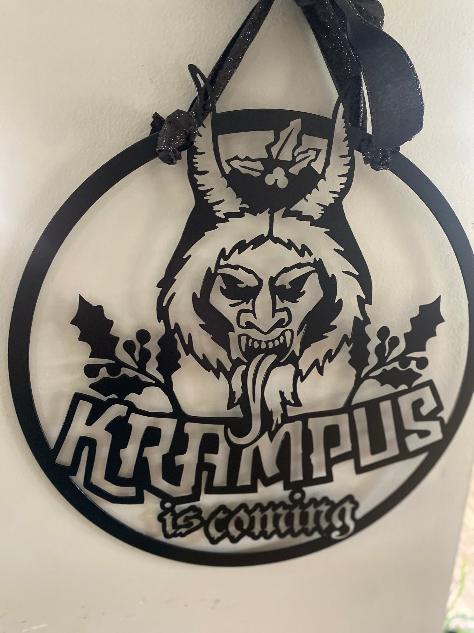 Celebrate the darker side of holiday tradition with this striking metal Christmas wreath featuring the legendary Krampus. Expertly crafted with attention to detail, this statement piece offers versatility through multiple size and finish options to suit any décor aesthetic. Perfect for those who appreciate unconventional seasonal displays and mythological folklore.