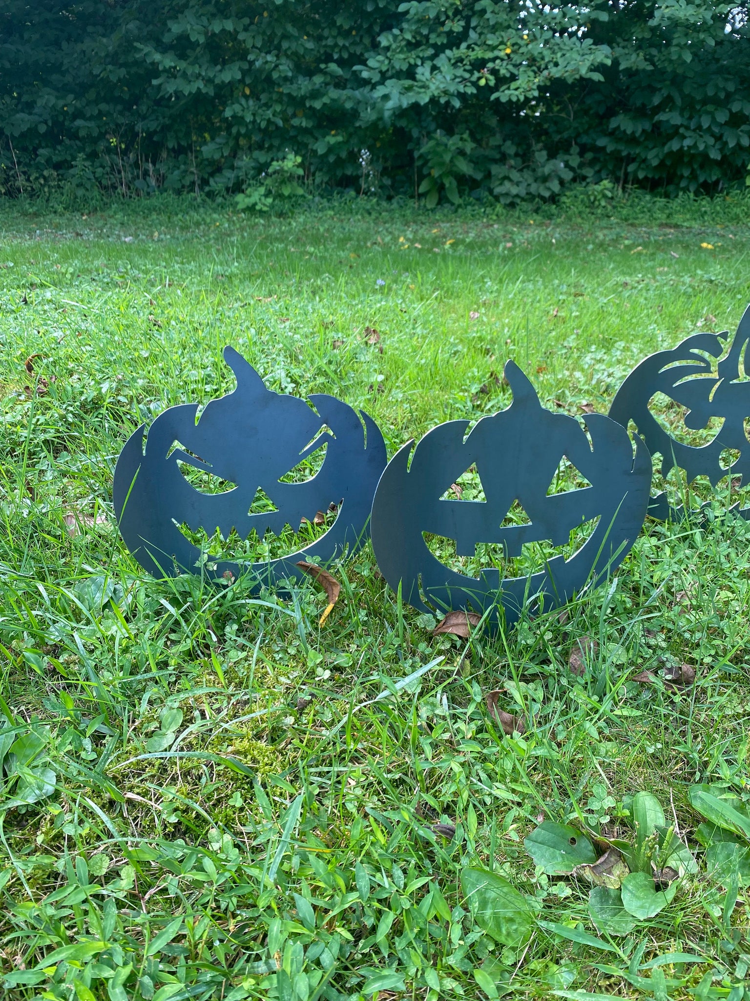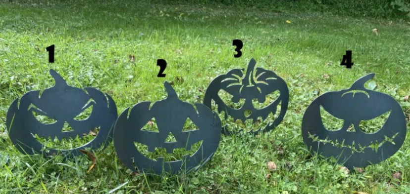 These little metal pumpkins are 10" round plus a 4" ground stake. Choose from single pumpkins, sets of two, or for your own personal pumpkin patch a set of four. Pumpkins come in multiple color options. Raw metal will rust naturally over time.
