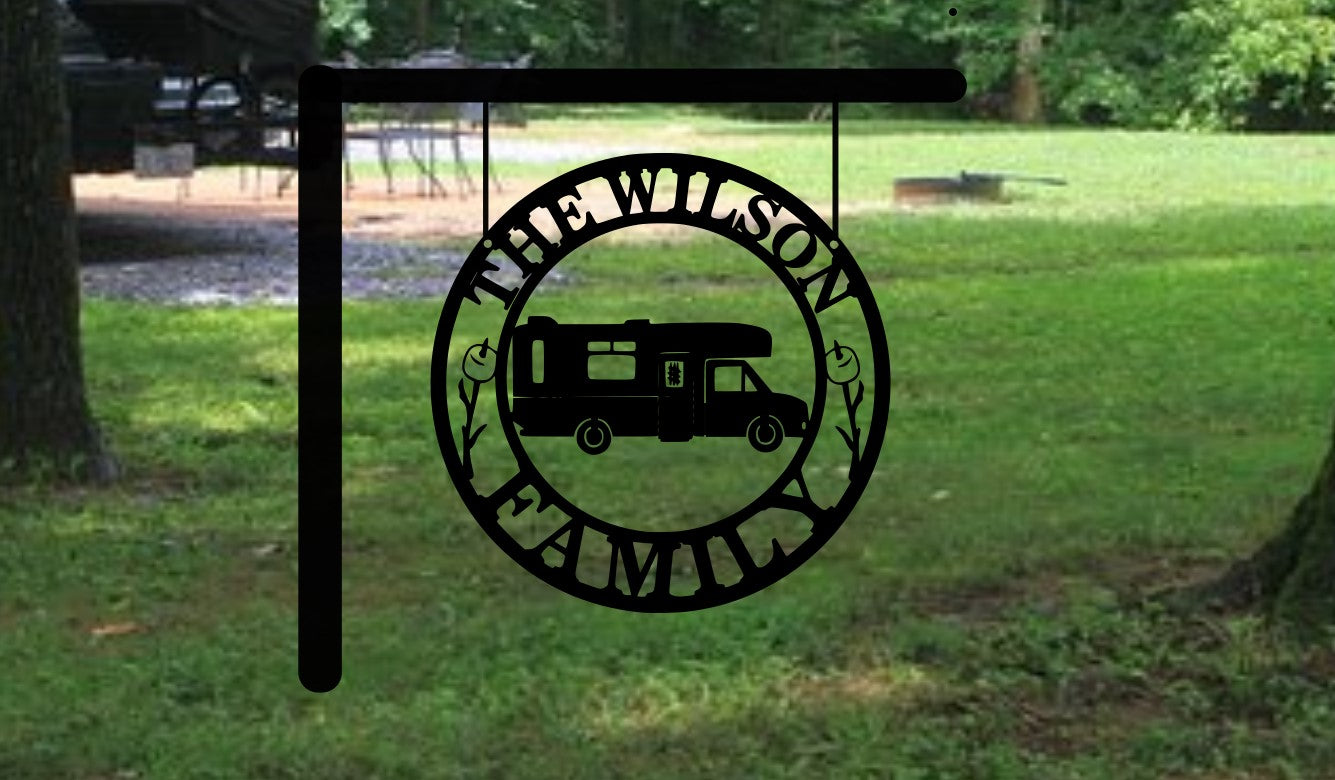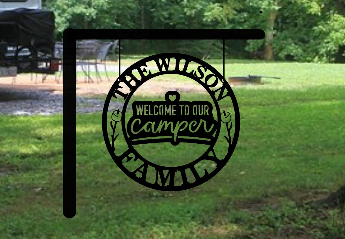 Camp sign is customizable. Choose your size and finish options then include any and all personalization's in the notes at checkout. Be sure to include any text and center design of choice.