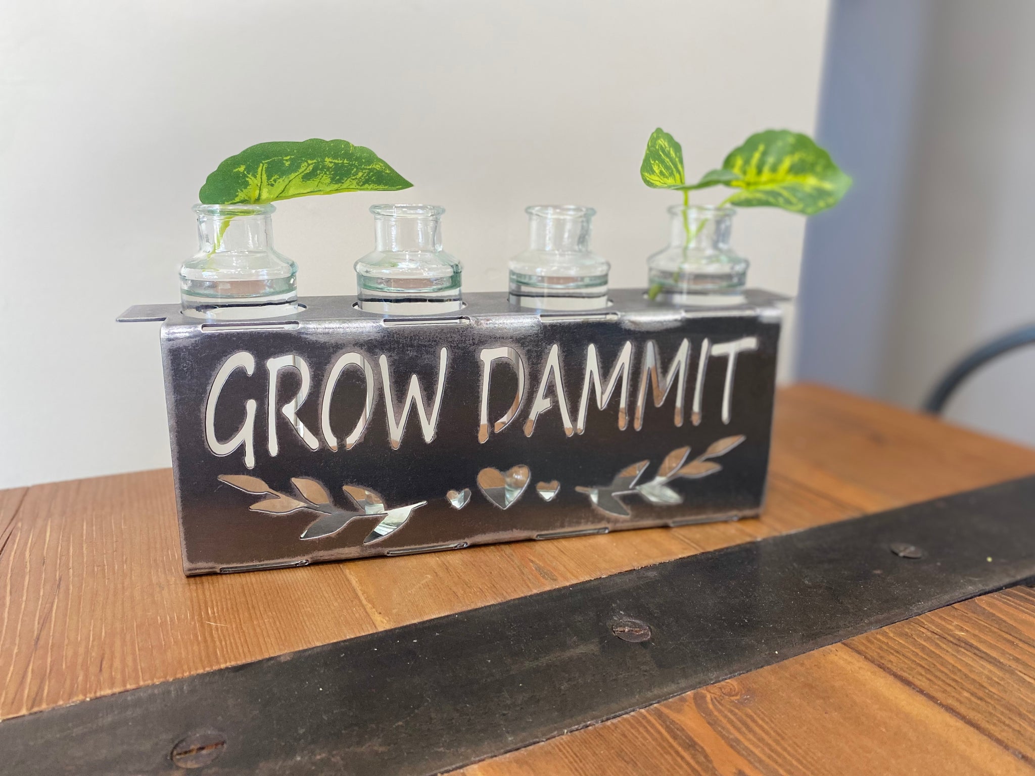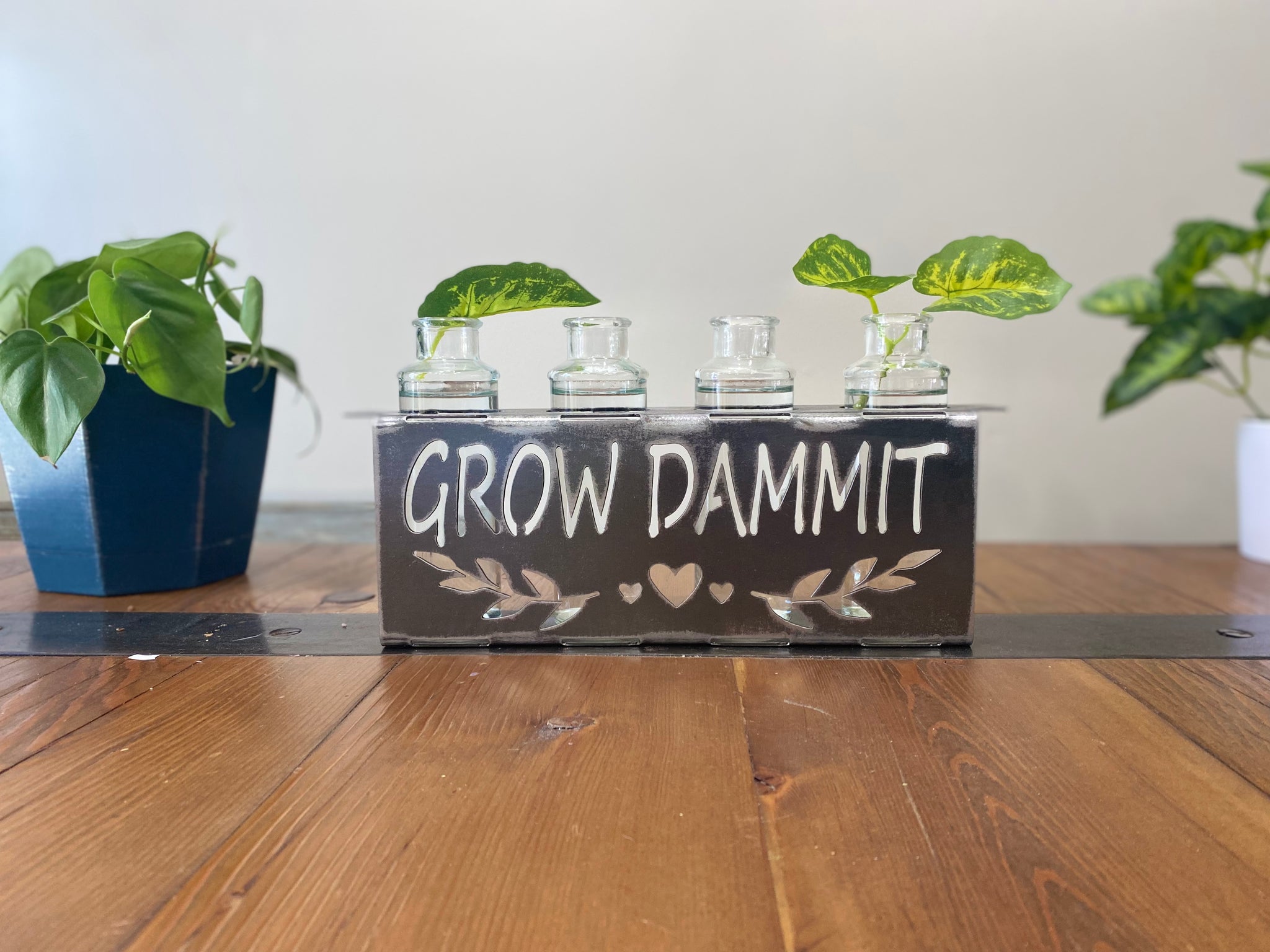 New product!! Customize this cute plant propagation stand or choose from one of the pre designed options. Includes 4 glasses! Stand features handles on both sides for and an open back for easy root checks. Made from 16 gauge steel, you choose your finish.
