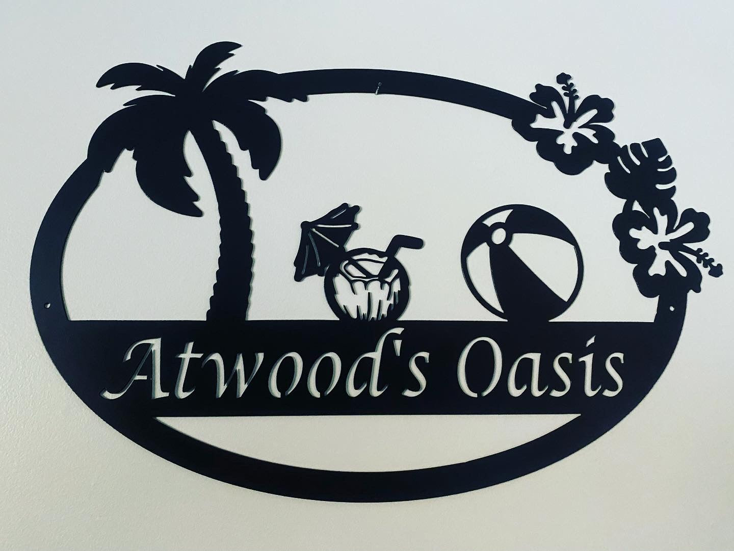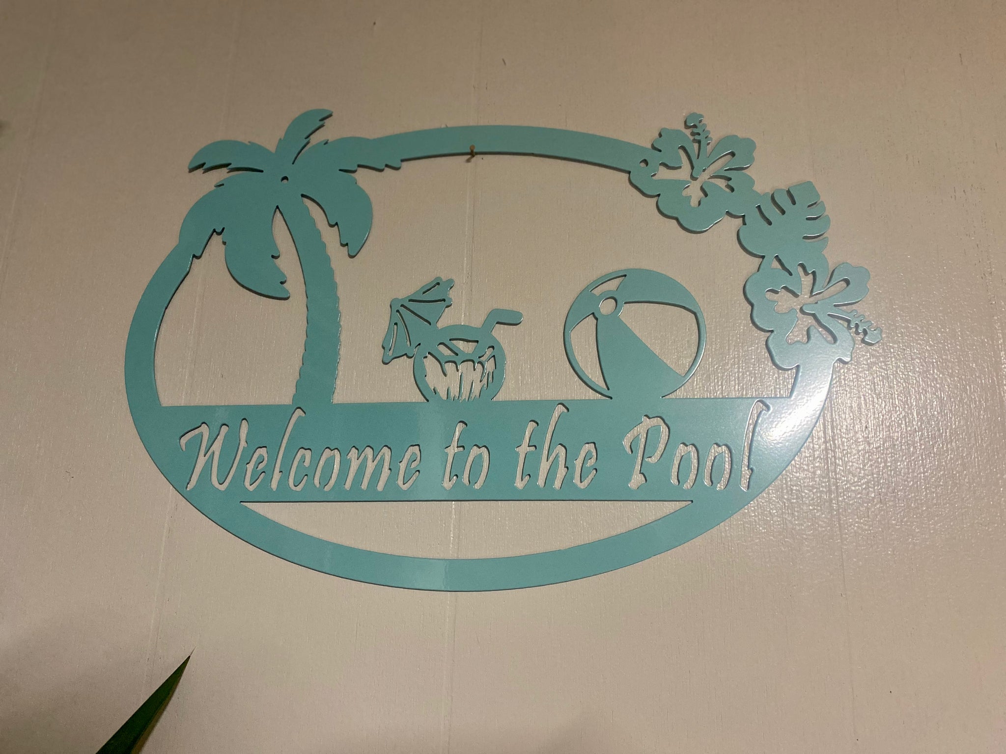 Welcome guests with tropical flair using this versatile metal sign, ideal for poolside and patio installations. Select from multiple dimensions and finish options to suit your outdoor aesthetic. Raw metal develops a natural patina finish, while alternative coatings provide weather-resistant protection for extended durability. Engineered for both indoor and outdoor use, this statement piece combines hospitality with lasting style.
