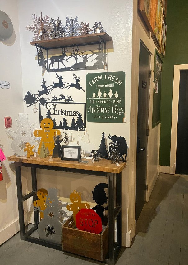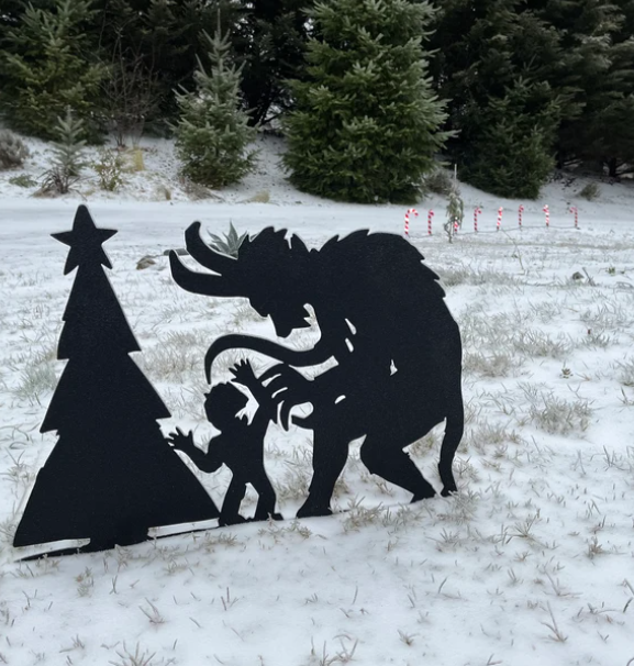 Display this striking Krampus holiday tableau in multiple configurations to suit your outdoor or indoor space. Select between a sturdy yard stake for ground installation, a self-supporting stand-up design, or a flush-mount wall option. Available in raw steel for an industrial aesthetic or black powder-coated finish for enhanced durability and weather resistance.