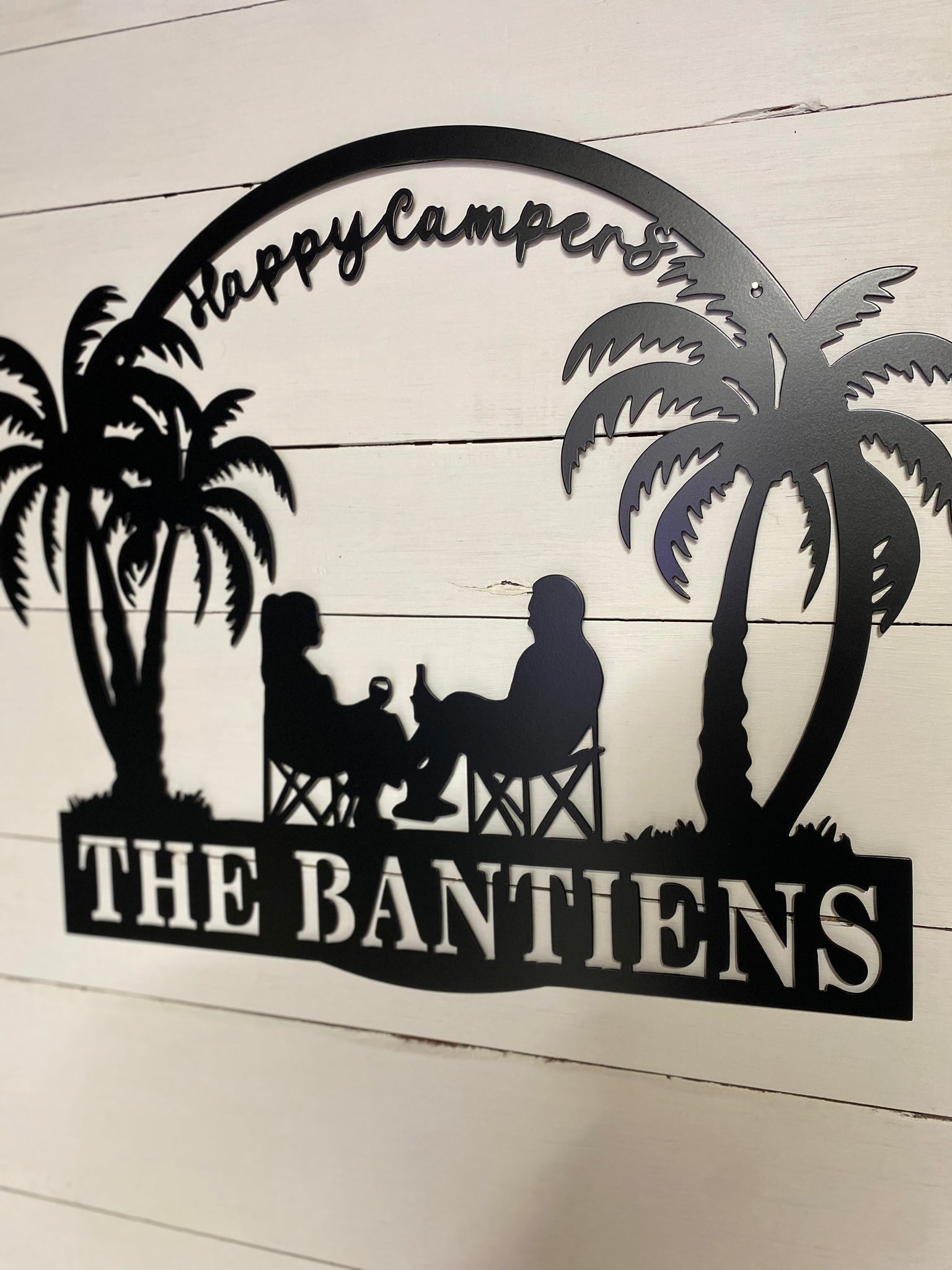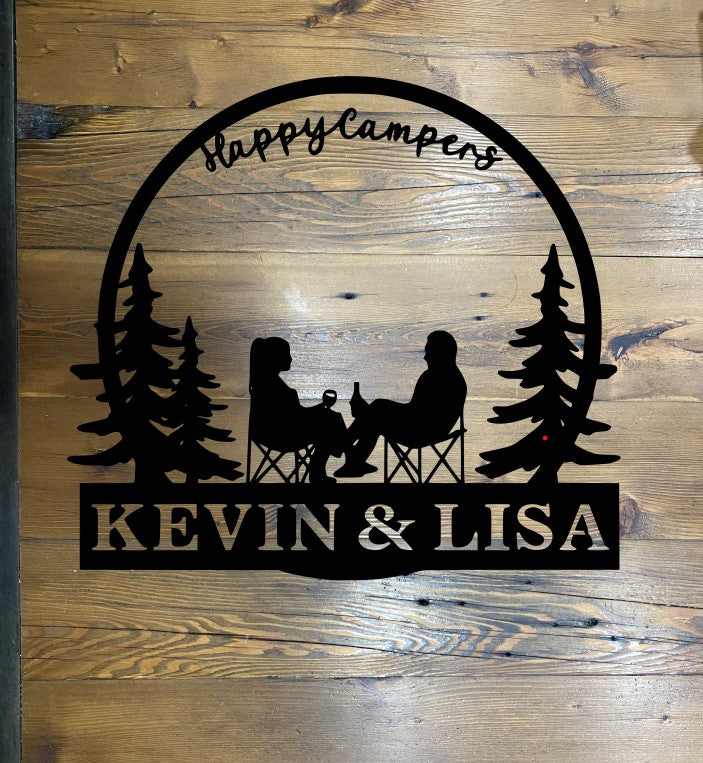 This cute couple's camp sign comes in multiple size and finish options. Please remember to include and custom text in notes at checkout! Couples are interchangeable, include any customizations at checkout.