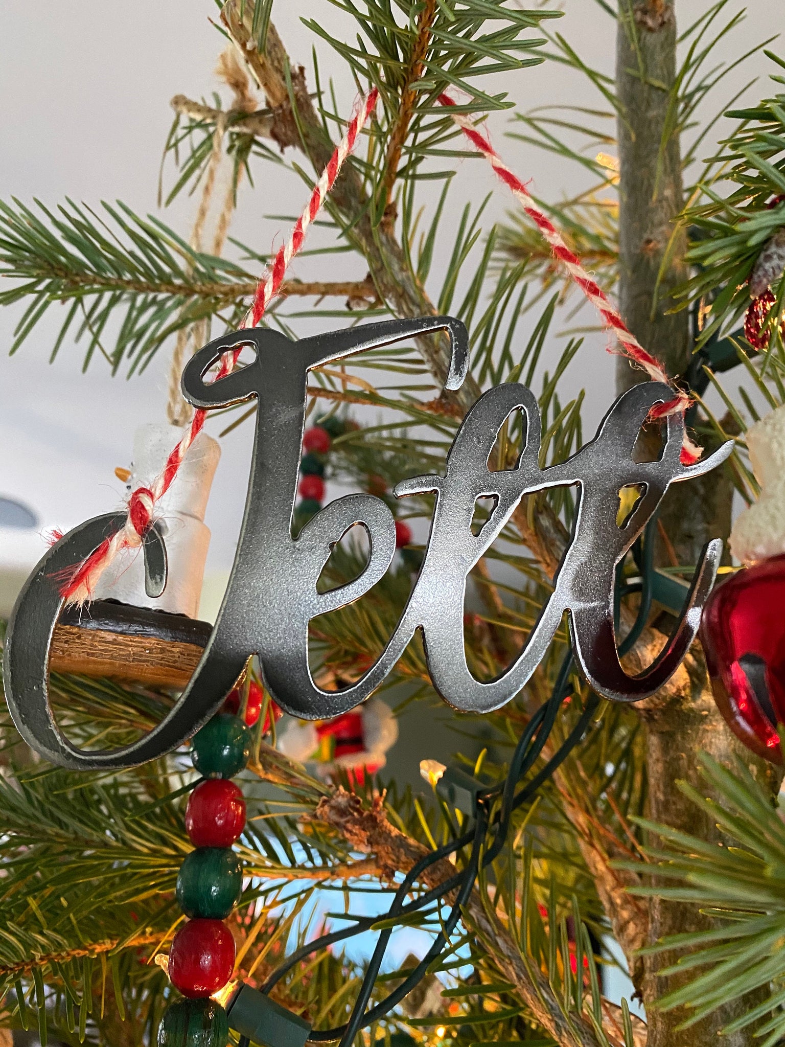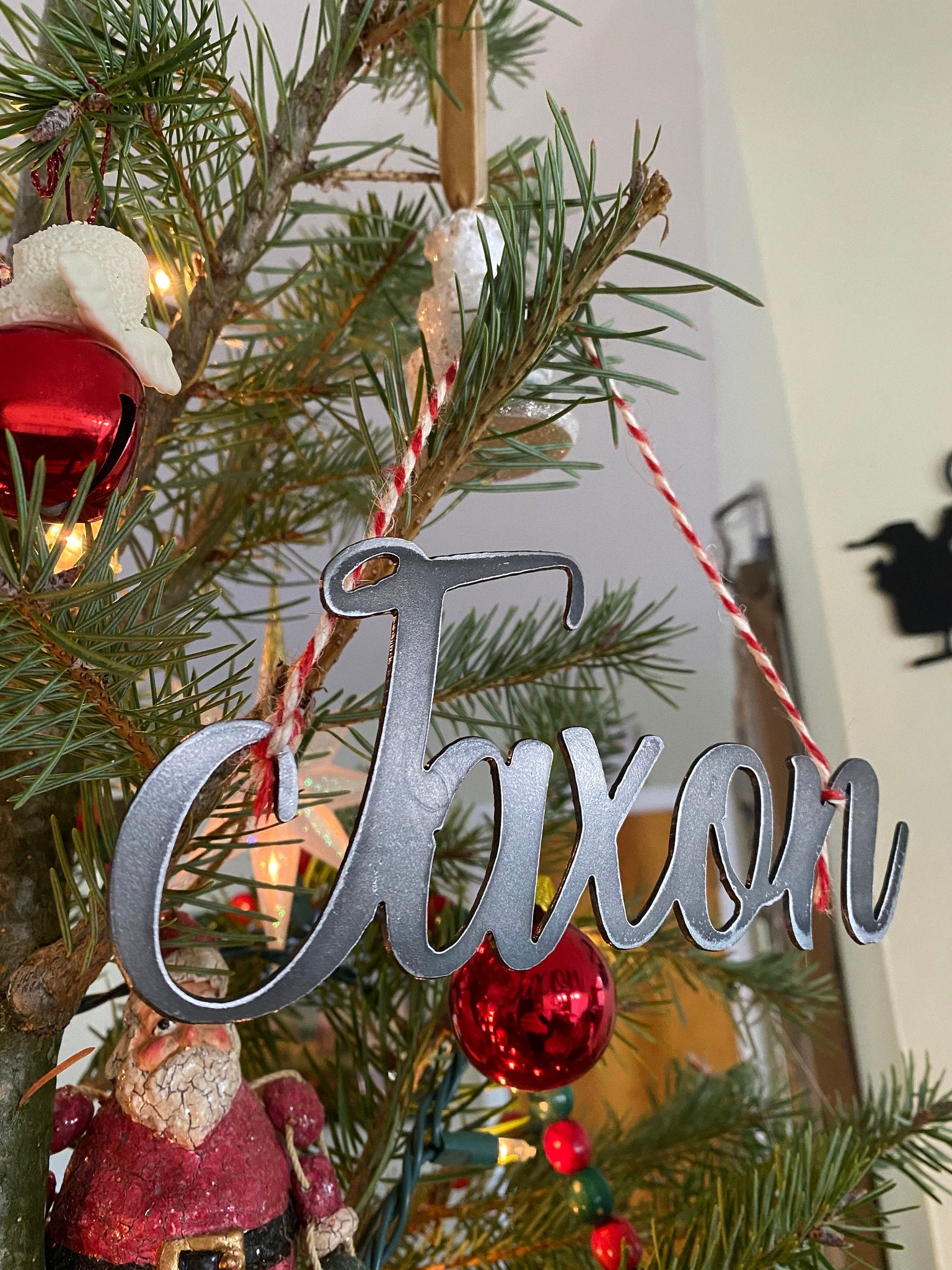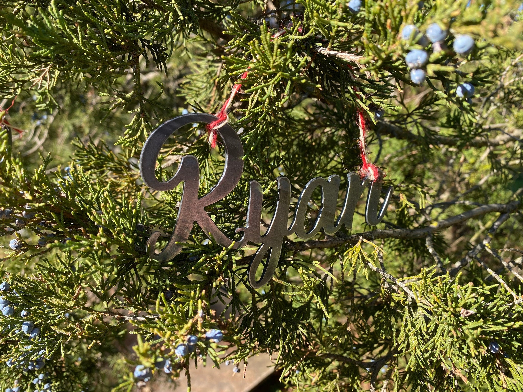 All ornamnets are cut from 16 guage mild steel. Ornaments are sold as shown with no additional finish. sizes range from 5-12inches wide depending on name length.